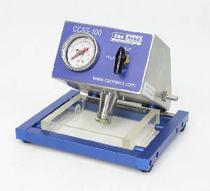 The "CND-SST-3 Secure Seal Tester" is used to test seal integrity on the glass or plastic containers and cans. The SST-2 has been designed to address the special needs of sealing cans and bottles that use aluminum roll-on, twist crowns, or plastic caps. The SST-2 operates with compressed air, nitrogen, or carbon dioxide. By detecting gas leakage, rather than liquid, the Secure Seal Tester gives more sensitive, accurate readings.