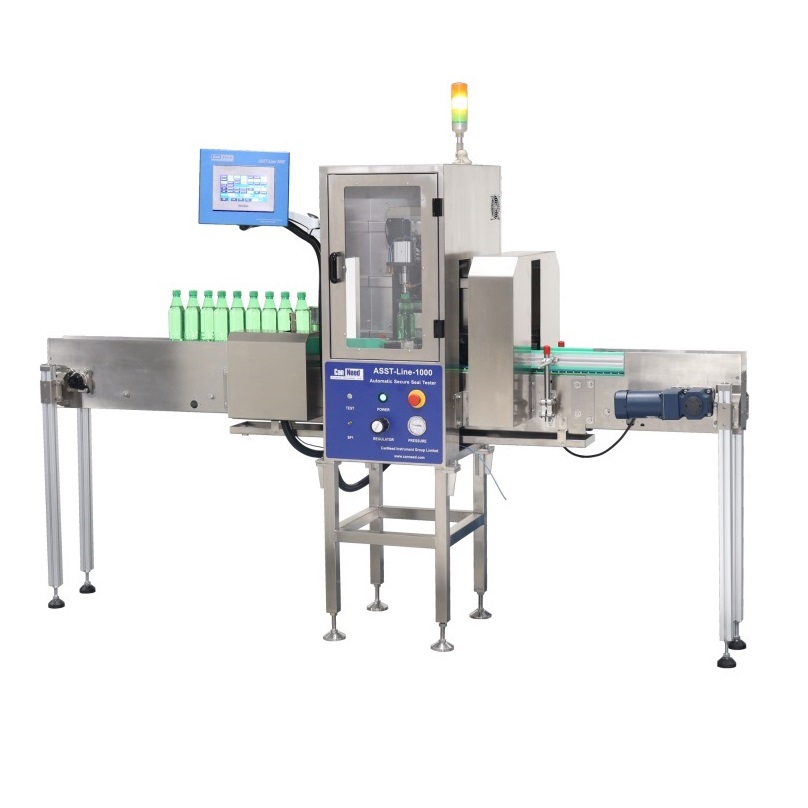CanNeed-ASST-Line-1000 Automatic Secure Seal Tester is used to test the seal integrity of finished products by unattended operation, it effectively controls the sealing properties and prevent gas leakage after packaging. Therefore it is widely used in beverage industry and meets to international inspection standards《GBT 17876-2010 Packaging Container - Plastic Anti-Theft Bottles》.