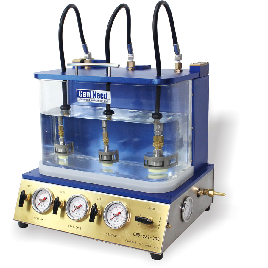 The CanNeed “CND-SST-3 Secure Seal Tester” is used to test the seal integrity on the glass or plastic containers and cans. The CND-SST-3 has been designed to address the special needs of sealing cans and bottles that use aluminium roll-on, twist crowns, or plastic caps. The CND-SST-3 operates with compressed air, nitrogen, or carbon dioxide. By detecting gas leakage, rather than liquid, the Secure Seal Tester gives more sensitive and accurate readings.