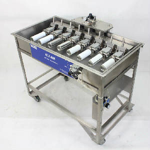 The “Canneed ALT-600 / ALT-800 Leak Tester for Aerosol can” is used for testing the leakage of Aerosol cans. ALT-600 can test 6 cans at the same time, and ALT-800 can test 8. The permeability tester for aerosol cans blows up the cans up to a maximum of 10 bar and submerges them under water. At the leaking spots of the can then visible air-bubbles escape. A special clamping system enables to measure different diameters and heights with one device. Two pressure levels can be set with the tester. The first is meant to hold and seal the can, the second step sets in when the mount with the cans has reached the lowest position. The maximum test pressure is 10 bar.