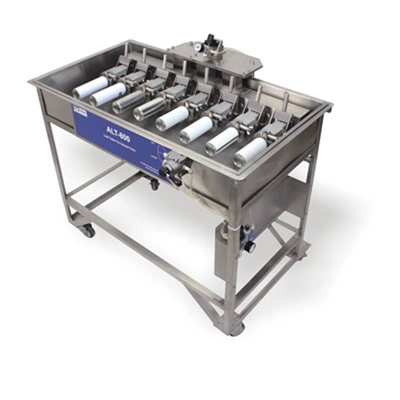 Canneed-ALT-600/ALT-800 Leak Tester for Aerosol can is used for testing the leakage of Aerosol cans. ALT-600 can test 6 cans at the same time, and ALT-800 can test 8. The permeability tester for aerosol cans blows up the cans up to a maximum of 10 bar and submerges them under water. At the leaking spots of the can then visible air-bubbles escape.