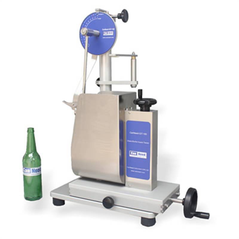 The “CanNeed-GIT-100 Glass Bottle Impact Tester” is industry standard to test the impact resistance of various glass bottles. There are two ruler readings: impact energy and angle of pendulum bar.