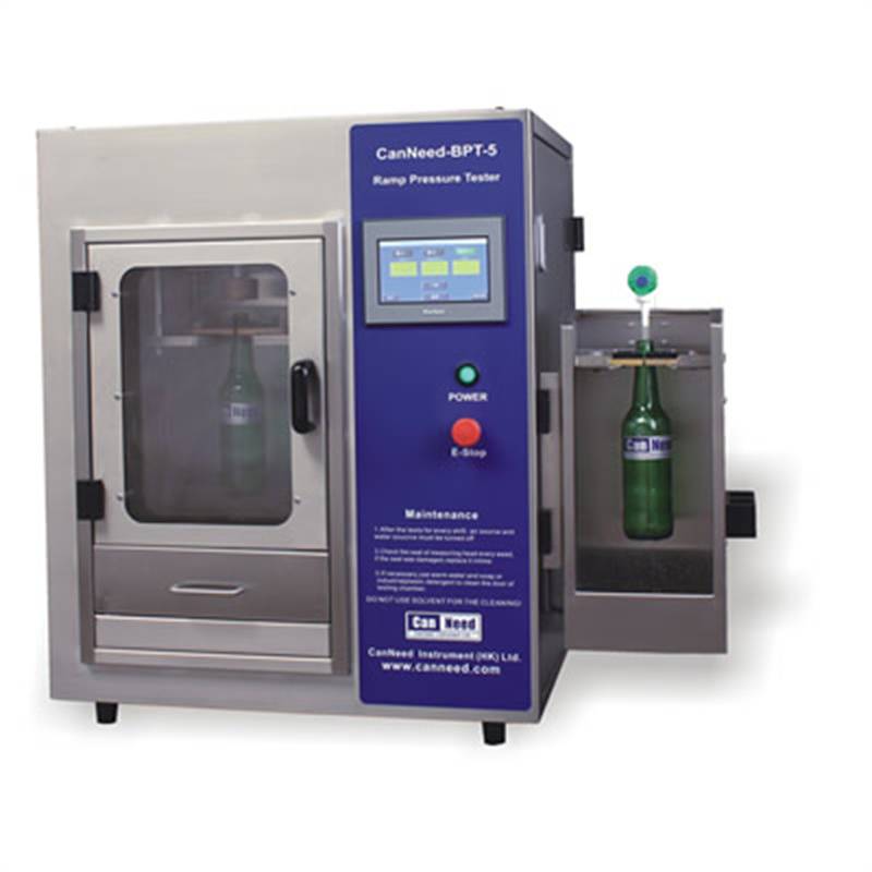 CanNeed-BPT-5 Ramp Pressure Tester (Automatic & Desktop) is able to test the resistance of glass bottles. It’s able to perform both acceptance test and burst test. Automatic affusion, automatic clamping and automatic test are available. Pressurizing process is controlled by servo system.  Real-time data is displayed and test result is recorded automatically.